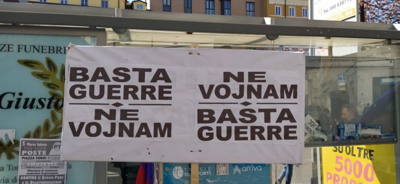 La Trieste per la pace è tornata in piazza con un nuovo appuntamento in Largo Barriera Vecchia sabato 12 marzo : una manifestazione promossa dal Comitato Pace Convivenza Solidarietà “Danilo Dolci” , Sinistra Anticapitalista, Rifondazione Comunista e Mondo Senza Guerre e Senza Violenza Trieste. Adesioni sono poi arrivate da Articolo Uno, ARCIpelago di Cordenons, Time for Africa, Europa Verde, Comitato per i diritti delle prostitute.