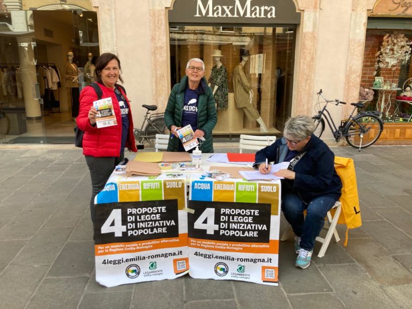 Nei giorni scorsi si è avviata in Emilia-Romagna la raccolta firme per 4 proposte di leggi regionali di iniziativa popolare che intendono intervenire sui temi dell’acqua-rifiuti, dell’energia, del consumo di suolo e delle politiche relative ai rifiuti.