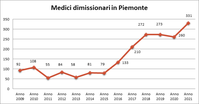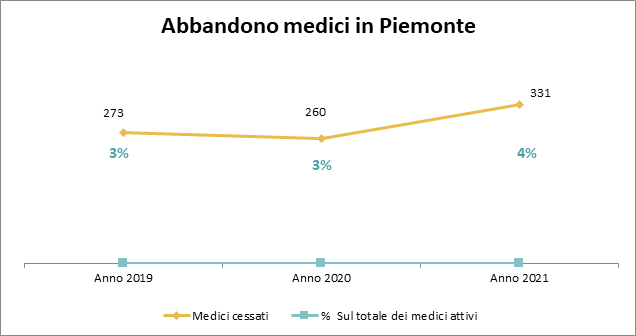 331 sono i medici che in Piemonte hanno deciso di lasciare la dipendenza dal SSN e proseguire altrove. Rappresentano il 4% del totale dei medici attivi e rispetto all’anno precedente sono cresciuti del 27% (dati Opessan).