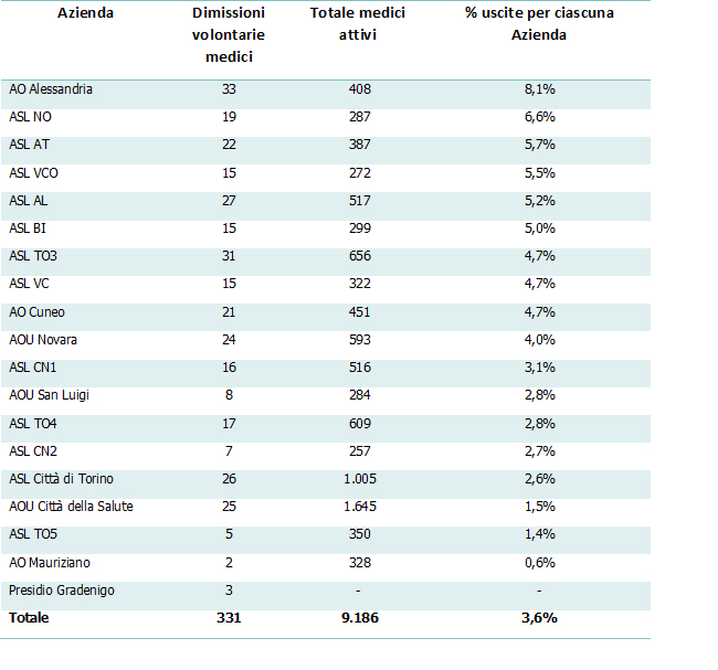 In generale, il polo alessandrino aveva già mostrato elevate fuoriuscite di medici nel 2020.
