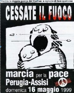 PS: il manifesto sotto attacco è lo stesso (ma in rosso) utilizzato per la Perugia Assisi del 1999. Al PUB era sfuggito…quando uno si arrabbia perde lucidità…capita!