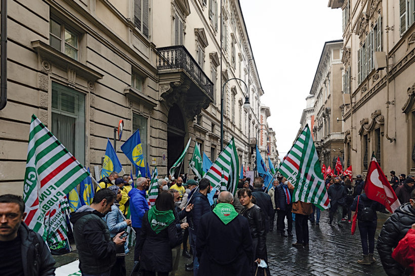 Questa mattina, davanti a Palazzo Lascaris, sede del Consiglio Regionale, i sindacati hanno manifestato contro la Giunta Cirio