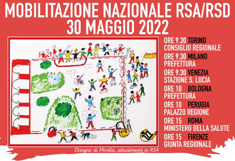 Negazione dei diritti umani e di cura nelle RSA/RSD/RSP. Disattesi gli impegni assunti dal Ministero della Salute nell’incontro del 30 marzo. Le persone disabili e anziane malate croniche peggiorano e muoiono nell’isolamento e nella trascuratezza; i parenti, le associazioni e le lavoratrici tornano a mobilitarsi il 30 MAGGIO 2022.