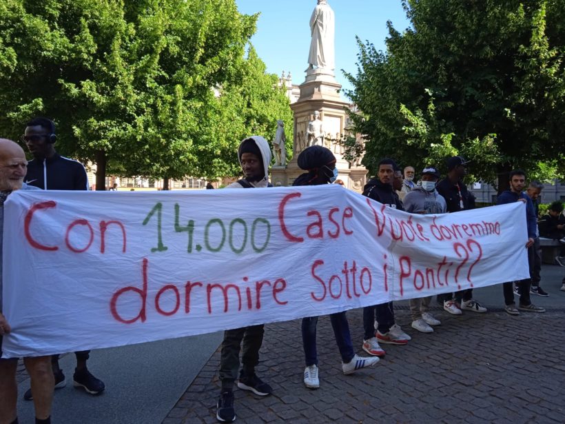 Oggi scadeva la data di presentazione delle offerte, non si sa chi e cosa abbiano presentato, ma gli abitanti di via Esterle 15 insieme alla rete di supporto “Ci Siamo” e ad associazioni e reti che si interessano del fenomeno migrazione a Milano hanno manifestato stamattina davanti a Palazzo Marino, sede del Comune, per ricordare che loro ESISTONO e non vogliono certo sparire, né dormire sotto i ponti.