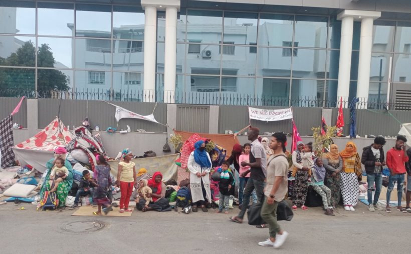 I manifestanti rifiutano che l’agenzia dell’ONU abbia tagliato le attività in loro supporto, costringendoli a uscire dai centri di accoglienza contro la loro volontà e a sopravvivere senza alcun tipo di assistenza. La scena è dominata da immagini di bambini posti in mezzo alla strada, bruciati dal sole durante il giorno e morsi dal freddo e dalla fame di notte, che mangiano pane e latte che non basta a riempire le loro pance, in attesa di aiuto o di una soluzione che non si sa se e quando arriverà in un paese come la Tunisia in grave crisi economica e sociale.