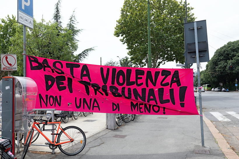 Questa mattina davanti al Tribunale di Torino, Non Una di Meno ha convocato un presidio in solidarietà di una donna vittima di violenza