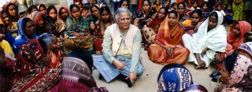 Il diritto umano fondamentale di avere accesso al credito diventa la forza promotrice della nascita della Grameen Bank, ovvero la “banca del villaggio” nel 1983: “La prima banca al mondo a erogare piccoli prestiti alle persone considerate non bancabili dal circuito bancario tradizionale, fornendo loro un’alternativa reale all’usura e alla povertà”. La continua ricerca di Yunus di trovare soluzioni alla povertà, dare fiducia agli emarginati e indigenti, lo ha portato a sviluppare un nuovo modello di impresa basato su finalità sociali: il Social Business, con cui nel 2006 il Prof. Yunus e la Grameen Bank vincono congiuntamente il premio Nobel per la Pace.