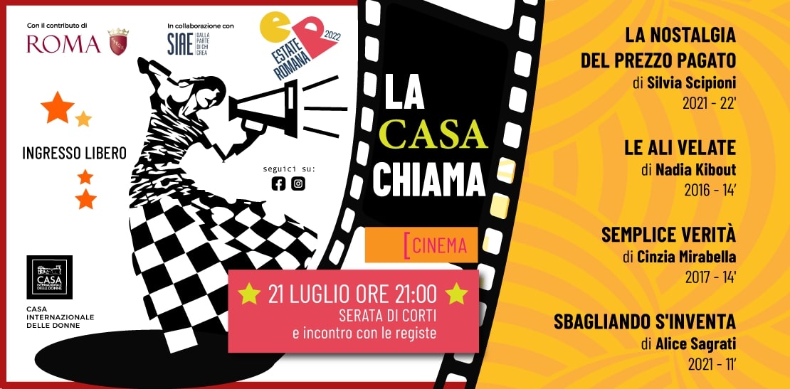 LaCasaChiama è un progetto della Casa Internazionale delle Donne di Roma vincitore dell’Avviso Pubblico Estate Romana 2022 – Riaccendiamo la Città, Insieme, promosso da Roma Capitale – Assessorato alla Cultura, curato dal Dipartimento Attività Culturali e realizzato in collaborazione con SIAE.