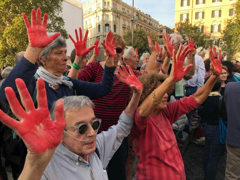 Siamo un gruppo autogestito che opera al di fuori di appartenenze o vincoli di partito e che ormai da quattro anni sfila ogni giovedì davanti al Ministero degli Interni in via del Viminale con le mani alzate tinte di rosso, colore che richiama il sangue dei migranti uccisi nel tentativo di raggiungere l’Italia e l’Unione Europea.