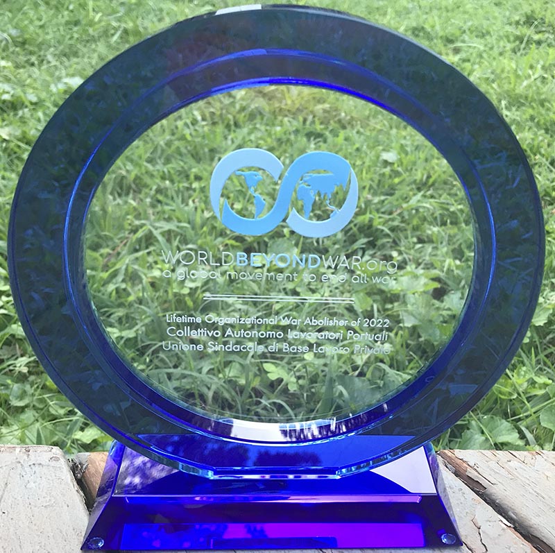 Il Premio Lifetime Organizational War Abolisher 2022 sarà assegnato al Collettivo Autonomo Lavoratori Portuali (CALP) e all’Unione Sindacale di Base Lavoro Privato (USB) come riconoscimento del blocco delle spedizioni di armi da parte dei lavoratori portuali italiani verso paesi in guerra.