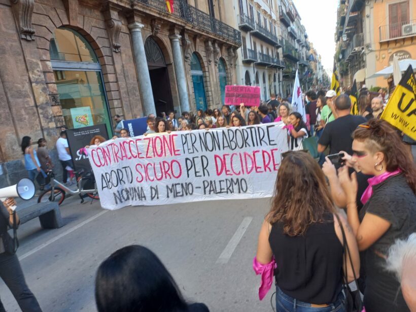 Il 28 settembre 2022 anche a Palermo, come titola il sito di Non Una Di Meno, “furiosɘ risale la marea per l’aborto libero sicuro e gratuito” con cortei e mobilitazioni in tutta Italia. “Lottare per la libertà di abortire significa per noi” continuano le compagne “poter scegliere sui nostri corpi e sulle nostre vite, e contro tutte le condizioni che ce lo impediscono. Gli attacchi diretti e le restrizioni all’aborto sono attacchi diretti a donne, persone con capacità gestante, persone migranti e senza reddito. Lo sappiamo che la violenza è più brutale sui corpi di chi vive in una regione in cui il tasso di obiezione è altissimo e non ha un reddito per spostarsi, sui corpi di chi ha un’identità di genere non conforme e sui corpi di chi scappa dalla guerra.” Manifestazioni si sono svolte in più di venti città d’Italia, ispirate dal Manifesto per un’insurrezione transfemminista, che recita tra l’altro: “siamo la rabbia della rivoluzione femminista e vogliamo mostrare i denti: uscire dagli uffici del ‘genere’ e delle politiche corrette e che il nostro desiderio ci guidi, sempre politicamente scorrette, sempre disturbando, ripensando e risignificando le nostre mutazioni”.