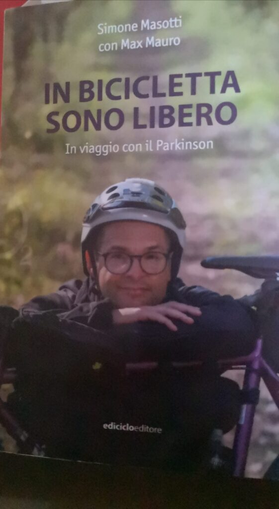 Simone, nel suo libro scritto con Max Mauro “In bicicletta sono libero” ediciclo editore, lo afferma con convinzione, una convinzione che si basa sul suo vissuto. Da sempre appassionato delle due ruote non si è lasciato catturare dalla passività che Mr Pk, come lo chiama lui, induce nelle persone che ne sono affette, ha reagito ed ha inforcato la sua bici.