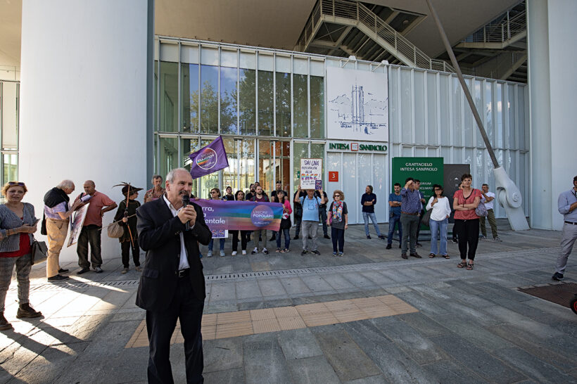 Non abbiamo nulla contro chi lavora anche negli uffici che abbiamo attraversato: noi siamo per la riconversione. Non dobbiamo più dover decidere tra il diritto al lavoro, il diritto alla salute, il diritto all’ambiente. Vorremmo che le tecnologie fossero spese per la difesa dell’ambiente e del territorio, per l’economia circolare. Non possiamo mettere i talenti straordinari dei nostri giovani al servizio dell’industria bellica. Non è possibile che negli ultimi 10 anni siano state aumentate le spese militari di quasi 40 miliardi di euro.