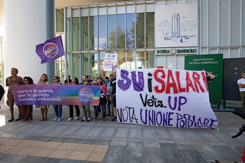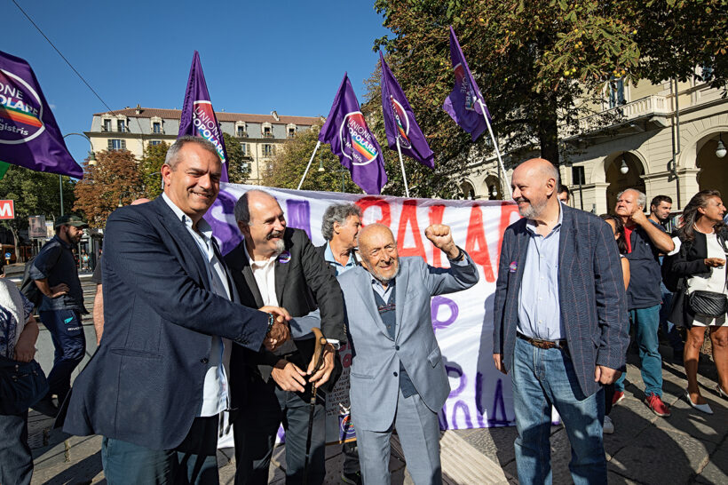 I candidati e i sostenitori di Unione Popolare hanno sfilato per le vie del centro. Sono partiti da piazza XVIII Dicembre, luogo simbolo dell’antifascismo, per poi proseguire verso il grattacelo S. Paolo, dove ci sono stati degli interventi al microfono e poi alle OGR, dove de Magistris ha fatto un discorso estremamente incisivo.