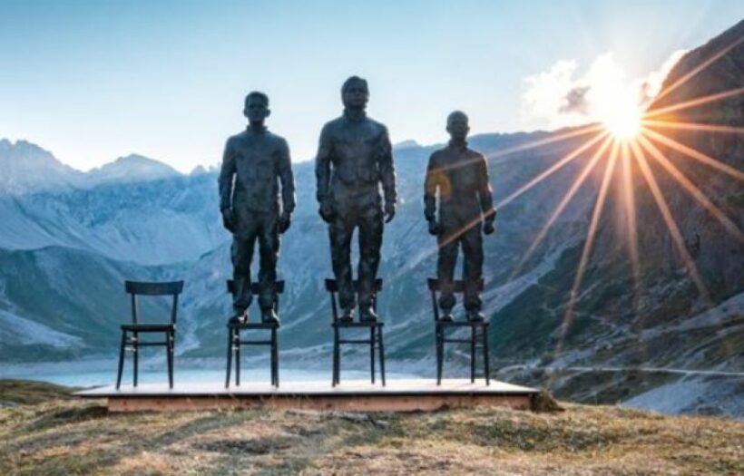 Esatto! Mi preme sottolineare che Anything to Say? non è un monumento commemorativo perché Assange, Snowden e Manning sono ancora vivi. Anything to Say? è un monumento partecipativo, che intende lanciare un campanello d’allarme. Per questo uso la monumentalità. I tre protagonisti, in scala reale, sono rappresentati in una posizione e con indumenti ambivalenti. Indossano tute e scarponi che possono essere interpretati sia come gli abiti di militanti pacifisti, sia come quelli di prigionieri condannati al patibolo. Così come la loro posizione eretta sulla sedia può essere letta tanto come un atto di coraggiosa leadership, quanto come l’attimo prima di un’esecuzione capitale.
