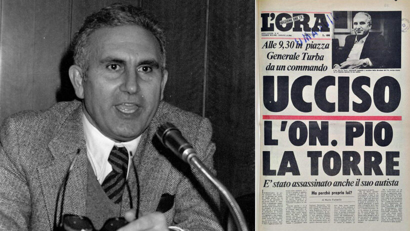 Il 30 aprile del 1982 il segretario regionale del PCI in Sicilia Pio La Torre fu assassinato, crivellato di proiettili in macchina insieme al suo autista Rosario Di Salvo da un commando mafioso. Nell’isola la sua maggiore battaglia era stata contro la costruzione della base missilistica NATO a Comiso, per la quale aveva raccolto un milione di firme in calce a una petizione al governo italiano. Le sue iniziative erano inoltre mirate alla lotta contro la speculazione edilizia. Nel 1980 Pio La Torre aveva presentato alla Camera dei deputati un disegno di legge che introduceva il reato di associazione di tipo mafioso e il sequestro dei beni patrimoniali posseduti dalla mafia.