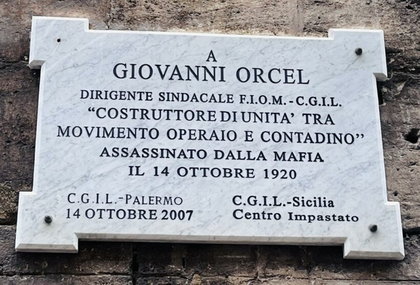 Il centoduesimo anniversario dell’uccisione del sindacalista Giovanni Orcel è stato commemorato a Palermo di fronte alla lapide di Corso Vittorio Emanuele, nell’ambito di una manifestazione organizzata da Cgil e Fiom, con la collaborazione di ANPI, Arci, Centro di documentazione Giuseppe Impastato, Centro studi Pio la Torre e Libera.
