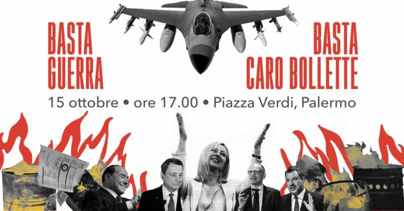 Pubblichiamo il comunicato stampa diramato dal movimento pacifista panormita che si ritroverà in piazza sabato prossimo –  con concentramento al Teatro Massimo (ore 17) – su una chiara piattaforma sociale rivendicativa, tendente alla costruzione di una opposizione nella società che tenga insieme tutte le istanze vertenziali ivi compresa quella climatica, con l’obiettivo di far convergere nella lotta scuole, università, luoghi di lavoro e quartieri popolari. Nel comunicato il movimento sostiene che è necessario oggi più che mai scendere in piazza a Palermo, come in tutte le altre città, non solo contro la guerra e la minaccia nucleare, ma anche “ contro l’invio di armi, contro questo modello di scuola e di lavoro, contro il caro bollette, per difendere il reddito di cittadinanza e pretendere il diritto a un reddito universale, per il diritto a una vita degna! ”