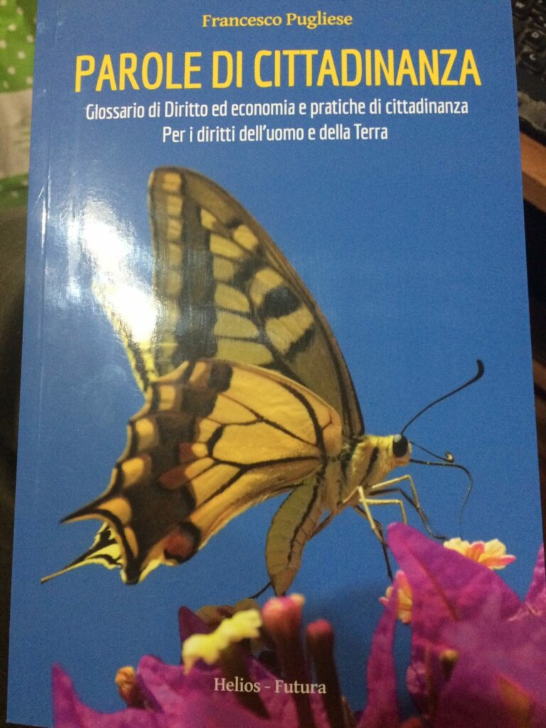 Francesco Pugliese nel suo trattato enciclopedico, un’autentica enciclopedia di cittadinanza attiva, elenca un glossario di diritto e economia e pratiche di cittadinanza per i diritti dell’uomo e della terra, dal titolo appunto Parole di cittadinanza.