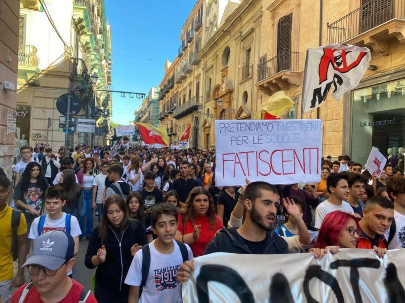 Lanciata nel corso di una folta ed attivamente partecipata assemblea studentesca, tenutasi lo scorso 30 settembre, stamattina si è svolta la manifestazione indetta dal Coordinamento degli studenti. Al concentramento di piazza Verdi (davanti al teatro Massimo di Palermo) numerosi gli studenti che hanno aderito alla mobilitazione contro la fatiscenza delle strutture scolastiche della città.