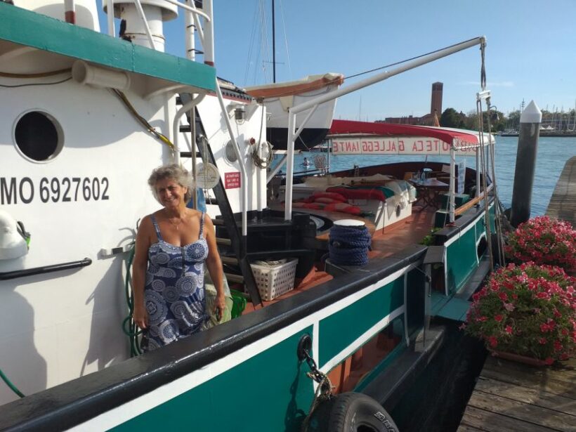 Sono andato a trovare Maria Luisa che con il suo compagno vive in uno storico rimorchiatore ormeggiato sull’isola della Certosa a Venezia perché avevano aderito alla 24 ore per Assange. Da lì è nata una chiacchierata che abbiamo insieme trasformato in una intervista sulla loro bellissima iniziativa di una Biblioteca Galleggiante.
