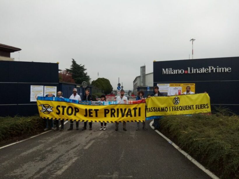 Quindici cittadini, fra scienziati accademici, studenti di scienze e sostenitori hanno bloccato oggi alle 13:00 le operazioni dell’Aeroporto privato di Milano Linate Prime. La protesta, organizzata da Scientist Rebellion ed Extinction Rebellion con il supporto di Ultima Generazione, si inquadra in una campagna internazionale in cui azioni di blocco di aeroporti privati o di protesta contro il settore dell’aviazione privata si svolgono in altri Paesi (attualmente Germania, Spagna, Svezia e Regno Unito9).