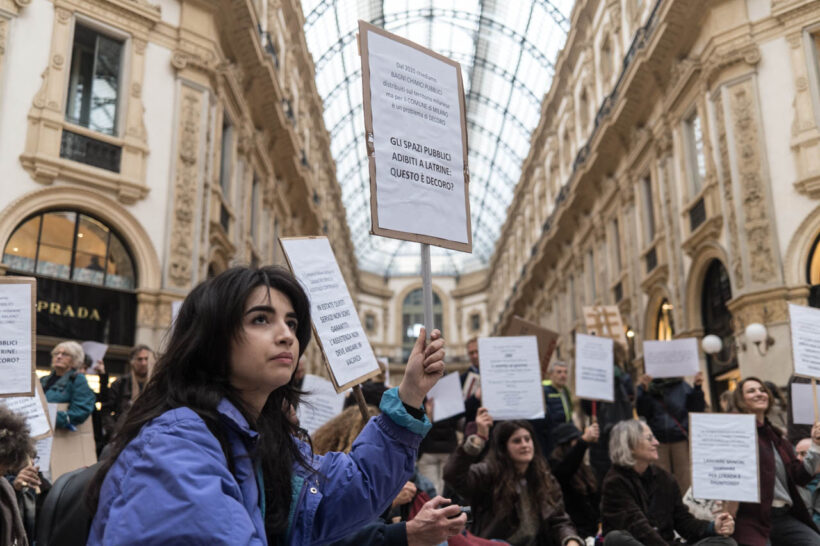 Sabato 12 novembre alle 15:30 nella Galleria di Piazza del Duomo, crocevia di turisti, si è svolto un flash-mob per richiamare l’attenzione sulla condizione delle persone senza fissa dimora. L’iniziativa, organizzata dall’Associazione Naga insieme all’unità di strada “Drago verde” dell’APS Mutuo Soccorso, ha l’intento di richiamare il Comune di Milano alle sue responsabilità ora che le temperature scendono e si attende la partenza del “Piano freddo”.