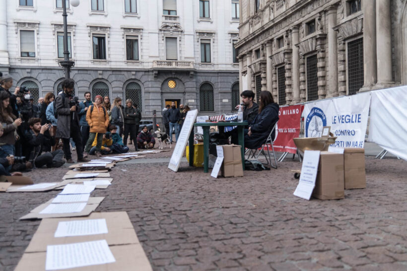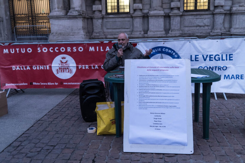 Alle 16.30 ci si muove lungo la Galleria e poi si tiene una conferenza stampa in Piazza della Scala, sotto Palazzo Marino, con l’adesione di varie realtà, fra le quali Naga, Mutuo Soccorso Milano, Lambretta, Drago Verde, Collettivo Zam, Rete Mai più Lager – No ai CPR e Ci Siamo.