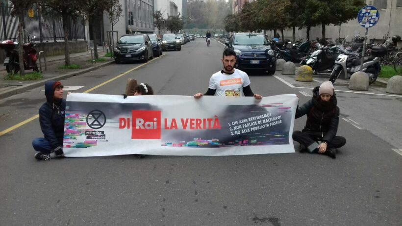 È la seconda azione da parte della campagna “DiRai la verità” a Milano per chiedere al servizio pubblico, la Rai, di dire la verità sulla crisi ecologica e climatica e di trattare la questione come il primo e grande problema di cui informare la cittadinanza. “DiRai la verità” nasce dalla gravissima mancanza sui mass media di spazi che trattino la crisi eco-climatica come una vera e propria emergenza che i governi di tutto il mondo devono impegnarsi a contrastare al più presto, per evitare effetti irreversibili, critici per la vita sul pianeta.