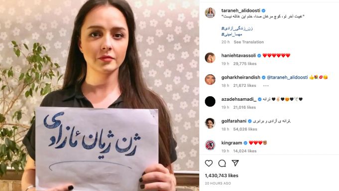 Un gruppo di artisti ha compiuto ieri un sit-in davanti al carcere di Evin a Teheran, contro la detenzione della famosa attrice Taraneh Alidosti. Il servizio di sicurezza aveva minacciato gli artisti telefonicamente dal parteciparvi. Alidosti aveva pubblicato sui social una sua foto senza copricapo e con un cartello di solidarietà con la rivolta popolare.