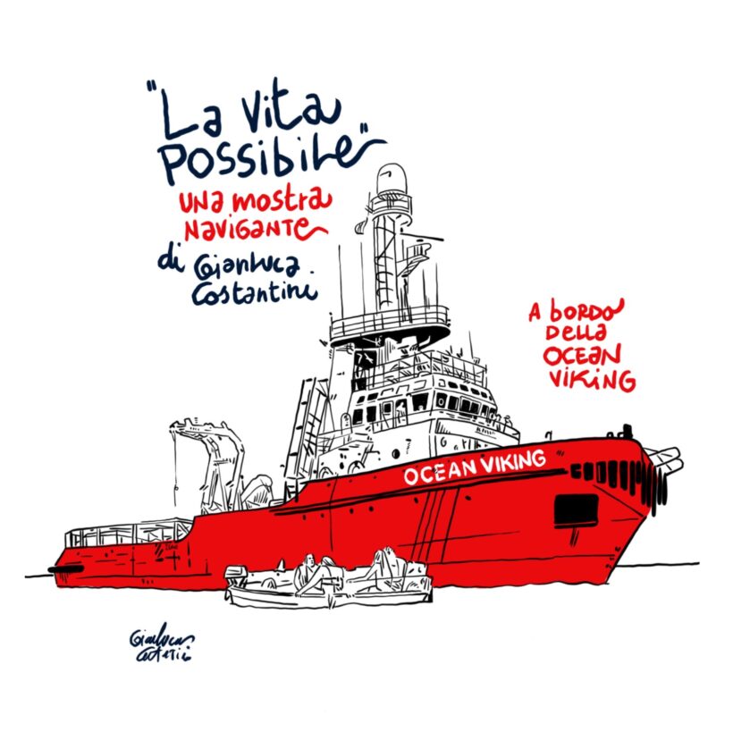 La mostra sarà allestita domani pomeriggio, 1 gennaio, a bordo della nave ambulanza Ocean Viking dai soccorritori di SOS MEDITERRANEE, su indicazione del fumettista.