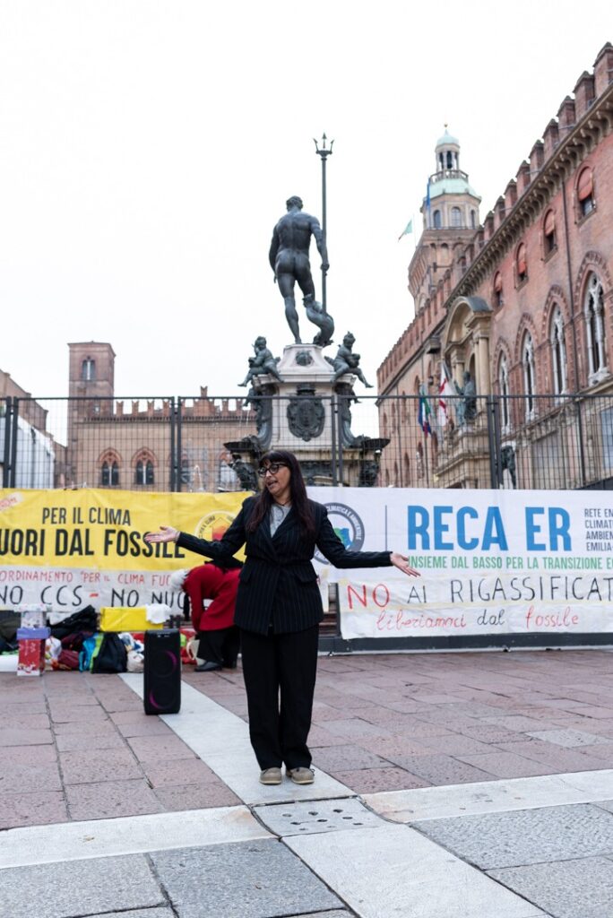 Ciò è avvenuto anche anche attraverso un flash mob a cui hanno partecipato attiviste e attivisti di Extinction Rebellion Bologna, Faenza Ecologica, TerraBlu, campagna Per il Clima Fuori dal Fossile, in cui è stato inscenata l’azione di disturbo che Reca ha fatto negli ultimi due anni, la fuga della politica regionale davanti alle sue responsabilità e la rottura di scatole da parte degli attivisti, o meglio del “pacco” ricevuto dai cittadini, culminato con l’offerta di una torta di cattivo compleanno alla Giunta regionale.