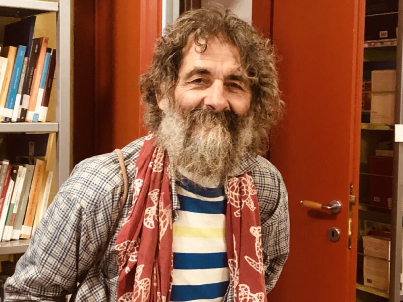 Domenica scorsa ha ritirato il premio “Torinese dell’anno” ricevuto dagli amici del Concerto del balconcino. È di passaggio a Torino per pochi giorni, giusto il tempo di partecipare al solstizio in Val di Susa. Poi, per le feste, raggiunge la figlia e la nipote a Rotterdam. “Mia figlia mi ha appoggiato in ogni azione, ma non quando volevo andare in Afghanistan a piedi, c’era anche la guerra”. Dopo pranzo, ci ha raccontato come ha conosciuto la madre di sua figlia, “un’attivista femminista, ma non molto nonviolenta… anche come carattere”. Sono ancora in buoni rapporti, si sostengono quando hanno bisogno l’uno dell’altra. E l’unica condizione che lei ha posto al loro rapporto è che lui non entri in casa sua dopo aver girato scalzo per strada. “Quando eravamo ancora innamorati, camminavamo scalzi insieme!”.