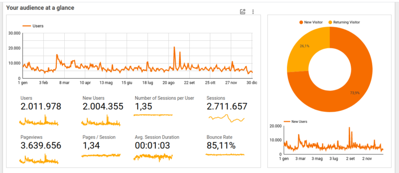 Le pagine viste, tuttavia, sono calate di 3.640.000 a 3.278.000. L’evento si può spiegare con il notevole calo degli accessi da Facebook ( da 638.000 del 2021 ai 360.000 del 2022, meno 44% quindi ), probabilmente a causa delle nuove “regole” del social che penalizzano la visualizzazione di contenuti “condivisi” e non originati sul social stesso ( testi, foto, video ).