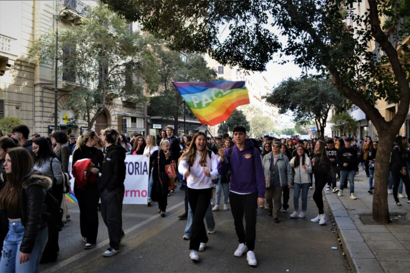 A Palermo, nella mattinata, si è svolto un corteo che, snodandosi da piazza Politeama è giunto sino ai Cantieri Culturali alla Zisa ed al quale hanno partecipato 35 scuole cittadine di ogni ordine e grado nonché studenti universitari. Almeno cinquemila (ma forse molto di più) le persone presenti, bimbi adolescenti giovani e attempati pacifisti, che ricordavano il Vietnam… Ragazzi, donne e uomini convinti della nonviolenza, dell’urgenza improcrastinabile della trattativa, del rifiuto delle armi.