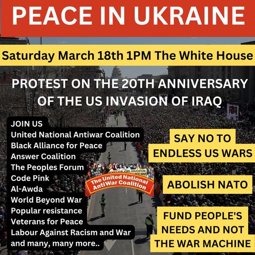 Non a caso l’impegno di questo risorto movimento pacifista americano non si è esaurito con lo scorso week end, ma anzi sta registrando un crescendo di iniziative, sia in presenza che on line, in vista della prossima e ancor più importante convocazione del 18 marzo, per commemorare appunto il ventennale dell’invasione in Iraq, con una manifestazione che si preannuncia più partecipata che mai a Washington DC.