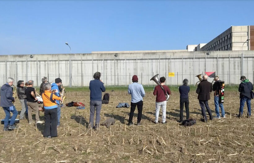 Ce l’hanno fatta: la Banda è arrivata dai campi, camminando per arrivare, da dietro, nei pressi dell’enorme carcere di Opera. Avevano scoperto che solo da lì Alfredo avrebbe potuto sentirli. E così in un tiepido pomeriggio milanese, gli Ottoni hanno scavalcato i cancelli e trapassato le sbarre con la loro musica.