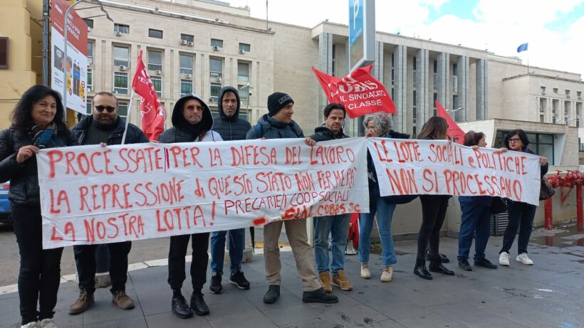 Giovedì 6 aprile una folta delegazione di lavoratori delle cooperative sociali, organizzati dallo Slai Cobas sc, sostenuti dalla Confederazione Cobas e dal Comitato NoMuos, ha manifestato davanti il Tribunale di Palermo in occasione dell’udienza su fatti avvenuti nel 2017 che videro i lavoratori mobilitati contro la decisione della Città Metropolitana di Palermo, la quale con una gara d’appalto ritenuta politicamente “truffaldina” dai lavoratori che sanciva, di fatto, il licenziamento di più della metà degli assistenti professionali igienico-personali, addetti al servizio degli alunni disabili.