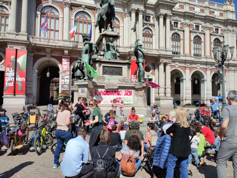 Siamo un gruppo di famiglie che vivono a Torino e che si ritrova nei principi e nelle istanze di Extinction Rebellion. Siamo molto preoccupati per la salute dei nostri figli” -dichiara Laura -” L’evidenza scientifica degli effetti delle emissioni inquinanti sulla crisi climatica e sulla salute dei bambini è chiara e convincente, pensiamo che si possa e si debba cambiare rotta subito con interventi della politica sulla città e sulle infrastrutture“.