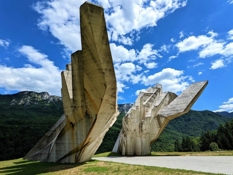 Sono stati stimati 40.000 “spomenici” (spomenik), monumenti commemorativi, grandi o piccoli, famosi o semi-sconosciuti, variamente disseminati nel territorio della Jugoslavia tra i Cinquanta e gli Ottanta. Tra questi, alcuni capolavori assoluti, come il Memoriale di Sutjeska (1971), a Tjentište, nella Republika Srpska; il Monumento alla Rivoluzione (1972) a Kozara, ancora nella Republika Srpska; la Necropoli Monumentale (1965) a Mostar, in Bosnia. A questa straordinaria celebrazione di immagini e miti è dedicata una conferenza in programma a Napoli venerdì 28 aprile, a partire dal volume di G. Pisa, Di terra e di pietra. Forme estetiche negli spazi del conflitto dalla Jugoslavia al presente (Multimage, Firenze, 2022), con gli interventi di Marco Coppola (CARC Napoli) e di Elisabetta Weglik (GalleriArt), negli spazi della GalleriArt, in Galleria Principe di Napoli.
