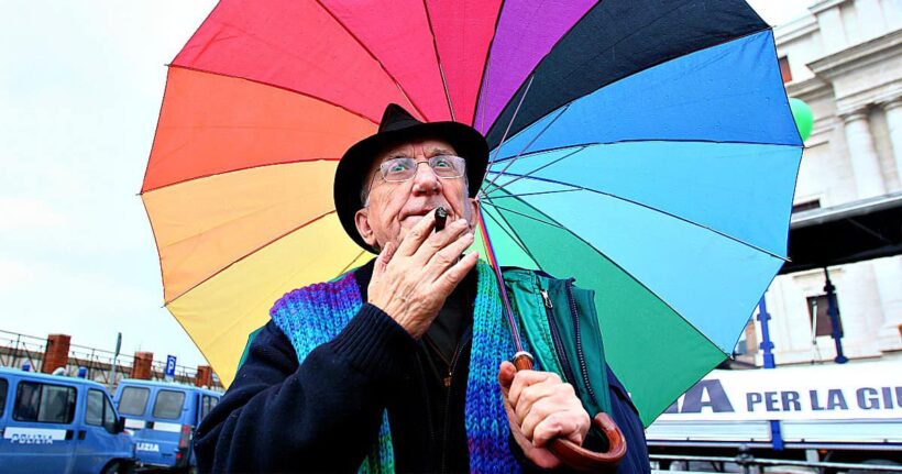 Perché si tratta di Don Gallo, certo: prete di strada amatissimo, genovese, partigiano, fondatore della Comunità di San Benedetto al Porto https://www.facebook.com/ComunitaSanBenedettoAlPorto), “una vita dalla parte degli ultimi e delle ultime, a contatto con i movimenti politici, con il sogno di un mondo diverso possibile…”