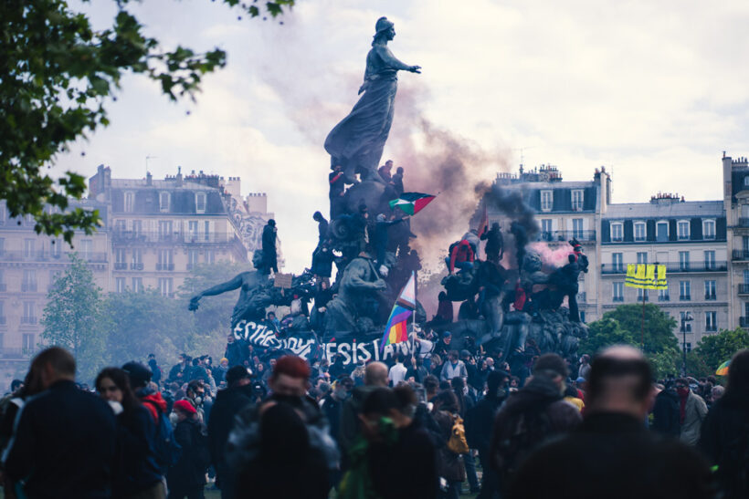 “Chi è il più forte? E’ chiaro, siamo noi!”, scandiva una signora, sbattendo un cucchiaio sulla sua padella. Due appassionati di animazione giapponese sono arrivati con la loro statuetta di Goldorak. “Rappresenta la giustizia”. Poco più avanti, su un mucchio di scatole di cartone in fiamme, un manifestante mascherato con un lenzuolo giallo in testa brandiva il suo cartello: “Frigo vuoto, non altri 4 anni!”. La rabbia non si è placata negli ultimi mesi. “Non ci sarà alcun ritorno alla normalità finché questa riforma non sarà ritirata”, ha dichiarato tre giorni fa a FranceInfo Sophie Binet, nuova segretaria generale della CGT.
