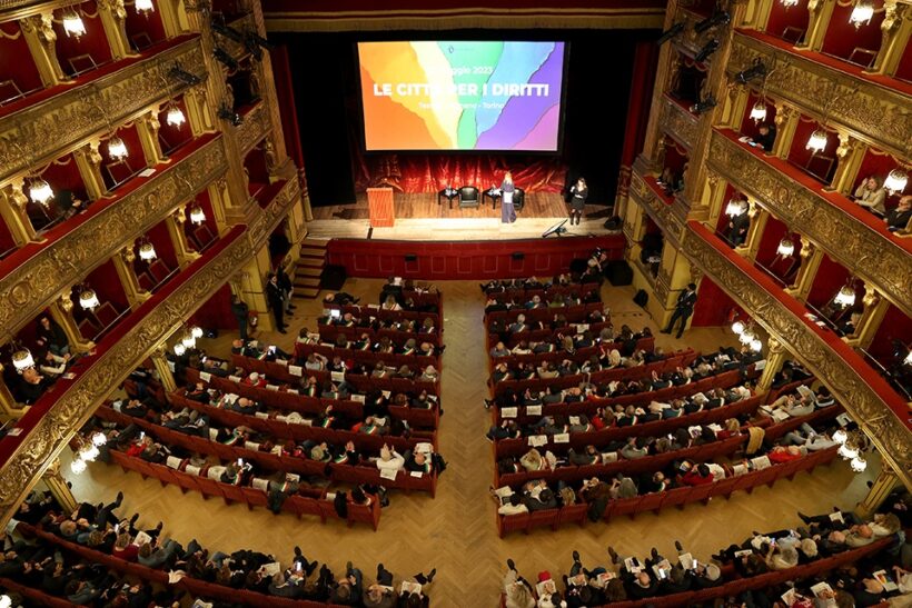 E mentre in tante città d’Italia continua pacificamente la protesta dei giovani per il diritto a poter studiare e a Roma andavano in scena gli autoproclamatisi Stati Generali, a Torino si svolgeva la convention “La Città per i diritti”, un patto tra oltre 300 sindaci provenienti da tutta Italia e arrivati al Teatro Carignano per chiedere più diritti per le famiglie omogenitoriali. 300 sindaci che hanno condiviso un documento in cui chiedono al Parlamento italiano di legiferare e di dare certezza al riconoscimento anagrafico delle figlie e dei figli delle coppie omogenitoriali e di introdurre il matrimonio egualitario con il conseguente accesso alle adozioni così come previsto per le coppie eterosessuali: