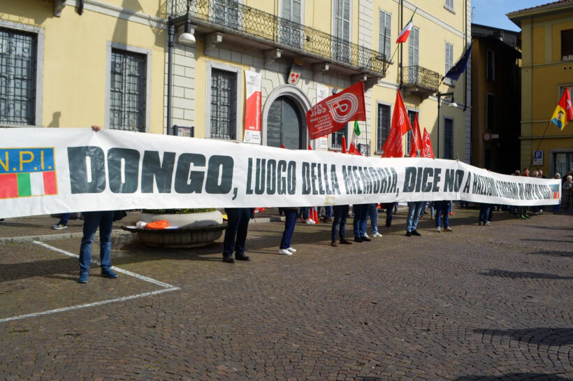 Domenica 7 maggio 2023: la giornata comincia con l’attesa del pullman che ci porterà a Dongo, organizzato dalla Camera del Lavoro di Como. Un altro, noleggiato dall’Anpi, ci segue a ruota. La strada del lago scorre abbastanza velocemente: il traffico del turismo non è ancora cominciato, è presto, anche se non proprio l’alba. Alle 9 circa siamo a Dongo; piazza Paracchini, dedicata a uno dei caduti della Resistenza in Alto Lario, è ancora semivuota; i nostalgici del passato regime non sono ancora arrivati; le camionette delle forze dell’ordine sì, e hanno già sostanzialmente diviso il territorio in due campi: il lungo lago per “loro”, la porzione di piazza antistante il Municipio, il Palazzo Manzi, a “noi”, in mezzo una ristretta terra di nessuno tra le transenne. Unico punto di passaggio un bar che ha un ingresso sul lungo lago e un altro verso la piazza.