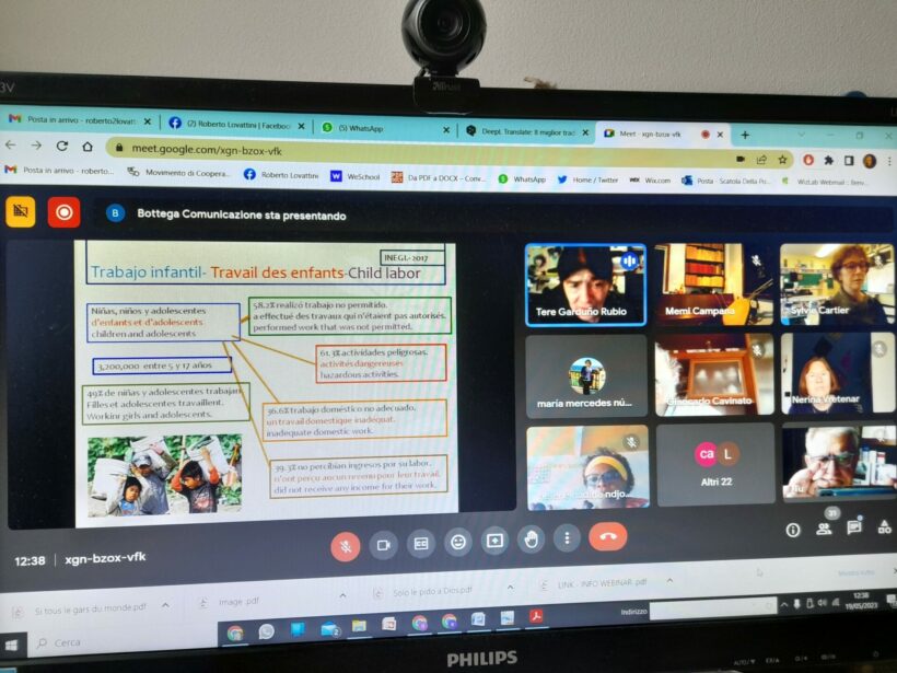 La durata è stata di 3 ore per dare il giusto spazio alle varie adesioni, consentendo la partecipazione di realtà di fusi orari molto diversi (per il Messico inizio alle 4 del mattino, le 6 per cileni e canadesi, le 10 per Burkina/Senegal/Togo, 11 per Benin/Cameroun, e 12 per l’Europa centrale). Un plauso particolare ai bambini messicani, che si sono alzati alle 4 del mattino, a quelli canadesi e cileni che si sono alzati alle 6 del mattino per essere presenti, ma anche a tutti gli altri …