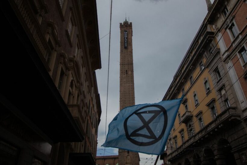 Mercoledì 7 giugno alle 14.30, alcunə attivistə di Extinction Rebellion hanno esposto sulla Torre degli Asinelli a Bologna uno striscione contro l’allargamento del Passante di mezzo, poiché rappresenta l’opera simbolo dell’indifferenza delle istituzioni locali e nazionali per gli effetti clima-alteranti delle politiche di sviluppo del territorio.