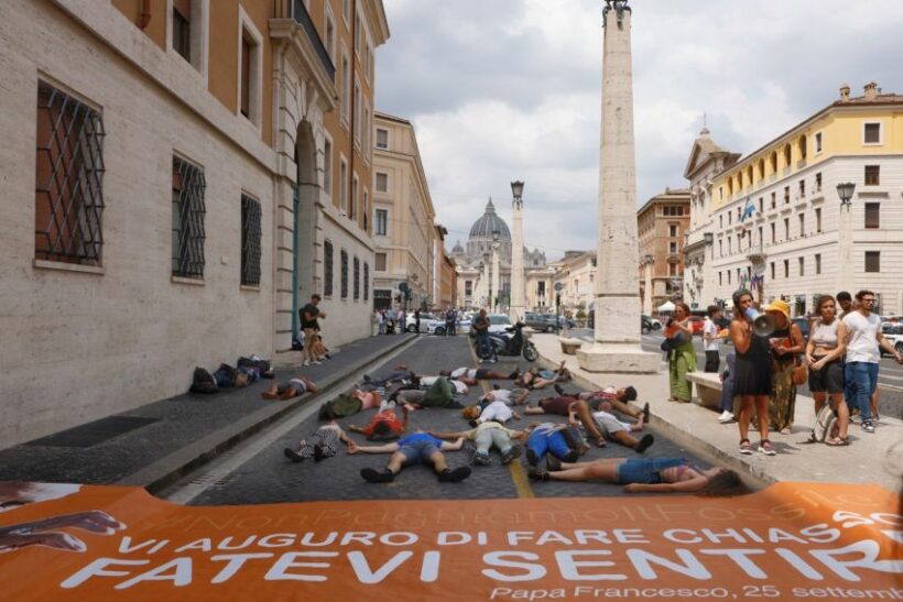 La Polizia ha impedito l’accesso in piazza San Pietro, identificando le prime persone che erano arrivate sul posto a metà mattina. Il die-in si è svolto in via della Conciliazione.