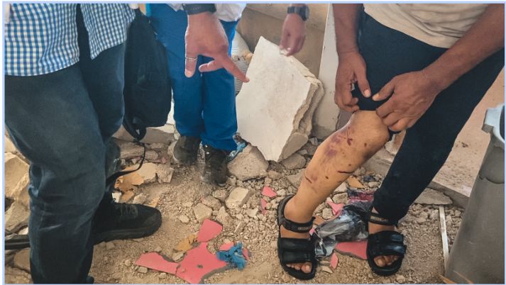Un residente mostra la sua gamba al personale di MSF il 6 luglio 2023, dopo che i cani dei soldati gli hanno morso la gamba durante un’incursione nella sua casa. Copyright di @MSF