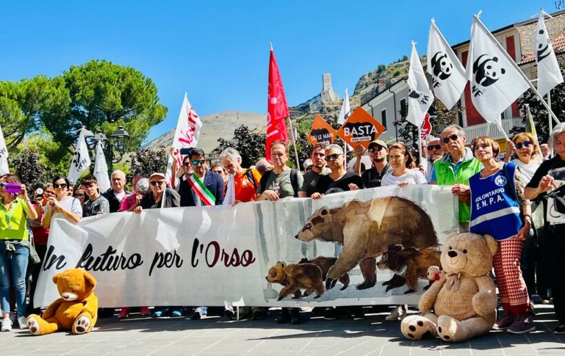 La mattina circa millecinquecento persone hanno preso parte a Pescina alla manifestazione indetta da WWF Italia, Lipu, Lav, Enpa, Legambiente, Lndc Animal Protection, Dalla parte dell’Orso, Salviamo l’Orso, Rewilding Appenines, Italia Nostra e Cai Abruzzo.