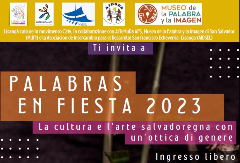 L’associazione “Lisangà culture in movimento OdV” è lieta di presentare l’iniziativa “Palabras en fiesta 2023, arte e cultura salvadoregna con una ottica di genere“, che avrà luogo il 14 ottobre a Torino, presso la Casa del Quartiere, Circoscrizione 1, in Via Dego 6.